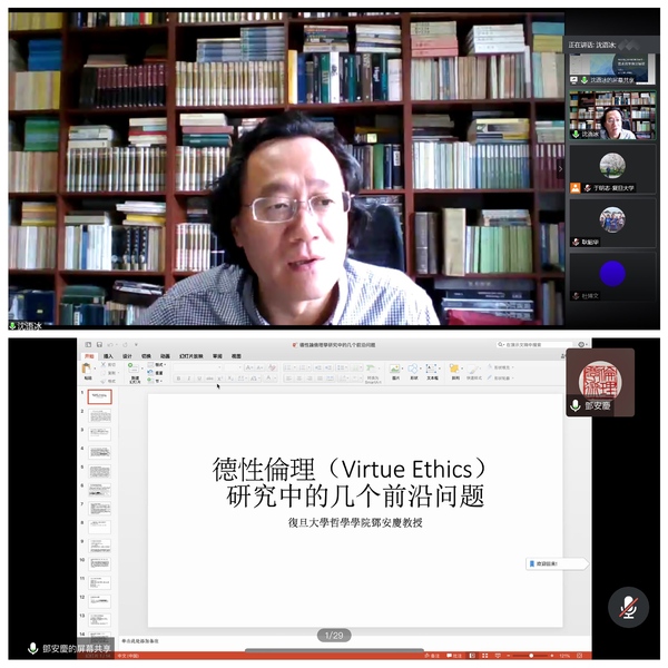 林晖教授首先对出席本次线上夏令营的各校同学表示热烈欢迎,提及在今年这样一个特殊时期,夏令营也很遗憾只能通过云上相会的形式开展,多少可能会影响到各位营员同学的参与体验,但复旦哲院仍然会希望通过本次夏令营,促进我院教师与各校同学间的了解,使各位营员熟悉复旦大学及哲学学院。复旦大学哲学学院作为新中国成立后最早新建立的哲学院系之一,拥有悠久的历史及较高的国内外知名度,学科门类齐全,学科特色明显,是各位同学继续深造的理想之地。他重点向各位同学介绍了哲学学院各学科点的基本概况及研究特色,期望通过复旦大学哲学学院这一平台,能给有志于从事哲学研究的青年学子提供更好的学习机会,并希望通过此次活动中增进各校师生友谊,促进学术交流。耿昭华老师则在致辞中提及,希望通过本次夏令营活动,能够使各位同学在了解复旦、认知复旦的过程中,同时不断认识自己的愿望和未来深造的目标,从而将认知转化为行动,身体力行地在学术探究、综合发展的道路上阔步前行,从而成长为国家的栋梁之才。