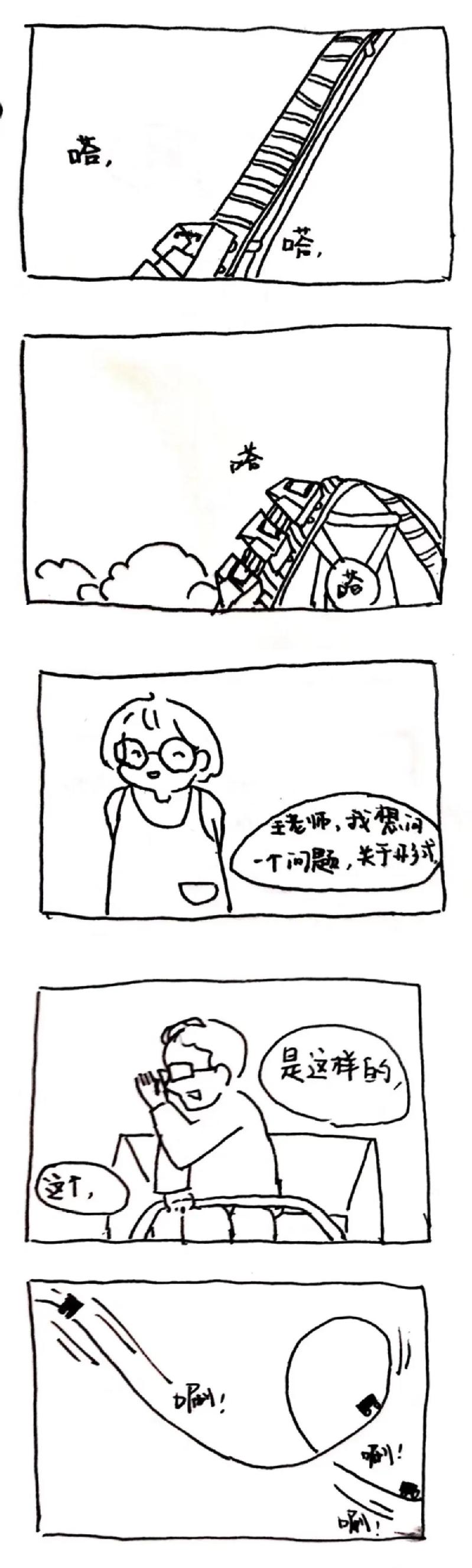 漫画当然夸张了点,但我语速确实比较快。其实,读稿的时候,我语速反而能慢一些。因为那稿子我已经写好了,我不用边想边讲,而是可以把注意力放在控制语速上。我以前也想过这个问题,要不要把自己上课时的语速降下来,但我后来发现不行。是越讲越快的,然后同学们反而很诧异,怎么还变速的。