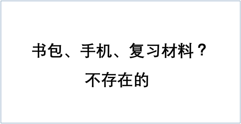 记得手机关机,关掉闹铃,检查桌肚和课桌,