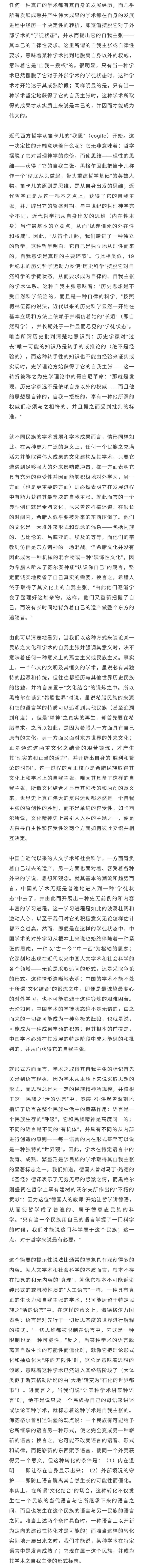 对于当今中国的人文学术和社会科学来说,一种意义重大的反省性自觉正在逐渐生成。这种发展起来的反省最为切近地牵涉到中国学术的自我理解,亦即牵涉到中国学术对于自身之当下处境和总体性质的基本判断:它是自律的,还是他律的?是自我主张的,还是依仗外部权威的?虽说这一问题从根本上来说深深地植根于当今中国的历史性实践中,但它在理论上无疑将直接成为中国的人文学术和社会科学日益关切并不断经受考验的重大问题。
