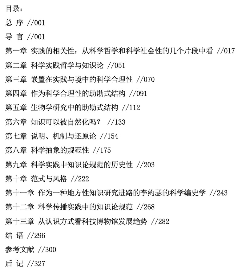 科学实践不仅包括科学家们的经验和理论上的研究,也包括科学传播。通过科学传播,科学事业不仅为自己培养后辈学徒,也是向公众介绍科学成果、传扬科学精神的渠道。科学传播一直是科学社会学和更为广泛的科学元勘(science studies)的研究对象。从理论为中心的科学哲学的视看,科学传播是科学工作中的纯社会性实践,只遵循社会性规范,因而是科学社会学的研究对象。然而,从以科学实践为中心的科学哲学的视角出发,科学传播不仅是社会性实践也是认知实践,其成功运作也需要一系列知识论规范。认识不到这一点,很容 易或者退到以理论为中心的科学哲学立场,或者落入极端相对主义的陷阱中。第十二章试图在梳理科学传播的社会性特征的同时,依赖证言知识论和专长哲学的资源探求当代科学传播中的知识论规范。