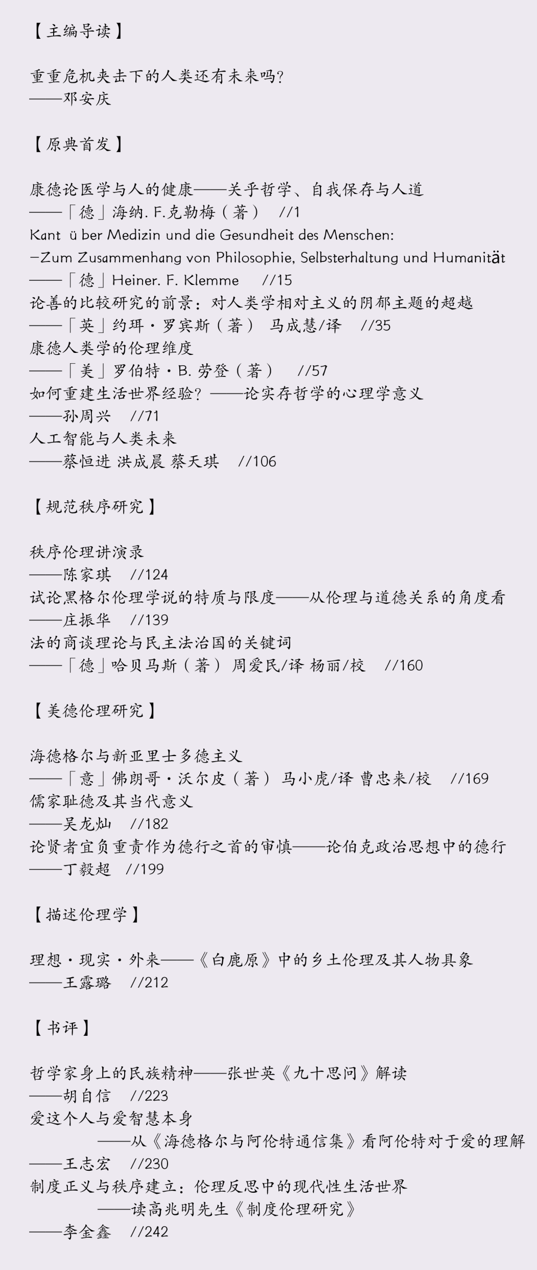 这就是本期《伦理学术》以“道德哲学与人类学”为主题的原因。