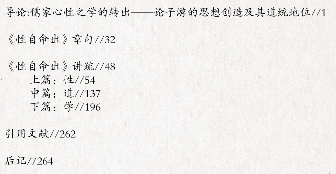由天命而有人性,顺人性而有人道,修人道而有教化。它一方面具有纵贯天人的格局,一方面具有由内而外的层次。以此方式,儒家的教化得以安顿,得以理解。此一结构,到了宋明时代更是成为理学性善论的经典证明。现在我们知道,《中庸》不是这条道路的最初表达。比它更早的《性自命出》就已经建构了这一格局。