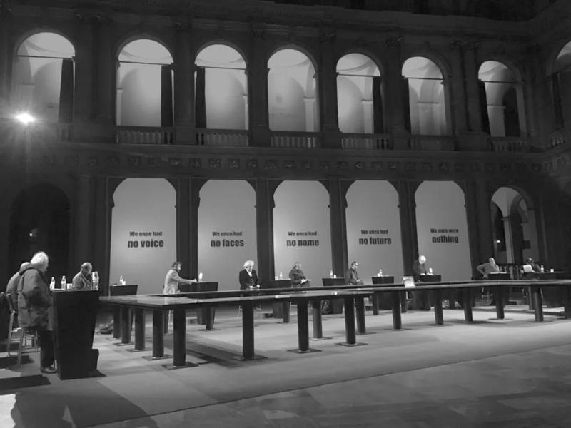 展演活动分为四个单元,分别为“山水:一份宣言”“世纪:一份提案”“风眠:一种历史”“渡物:一段历程”。值得一提的是,“山水:一份宣言”单元就在莱茵宫举办(图10)。此时,无论是“山水”主题,还是展出地莱茵宫,都别具意义。特别是今日之“山水”,它“不但 是一种独特的美学/感知之学,还是一种超越末世论和弥赛亚主义的‘大地政治’,一种对分裂的世界观进行重新整合的‘宇宙技术’”。在“世纪:一个提案”单元中(图11),弗兰克 (Anselm Franke)、许煜、南希(Jean-Luc Nancy)、斯蒂格勒(Bernard Stiegler)、陈界仁等12位来自世界各地的学者和艺术家汇聚在五十年前曾爆发“革命前夜”的第一场学生运动、并开启了“五月风暴”历史的斯特拉斯堡大学中厅,立足于12个核心时刻,“回顾过去百年中那些未完成或被错过的历史,重新激发出事件的动能与势能,在时间的涡流与回溯中,把可能性还给历史”。