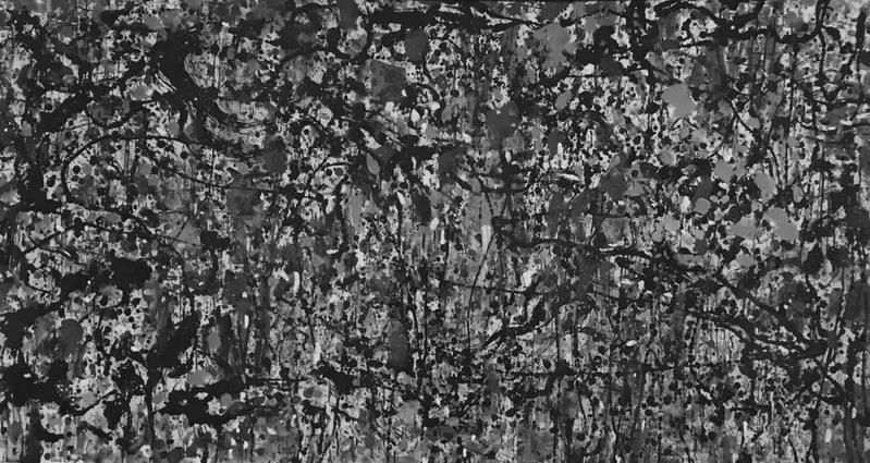 1939年,格林伯格在《前卫与媚俗》一文中将学院派、苏联社会主义现实主义和法西斯艺术一并视为媚俗的“后卫”,将抽象绘画看作真正的前卫艺术。吴冠中也是如此,他反对学院派、反对苏式现实主义,主张艺术形式本身的构成及其美学。在某种意义上,“形式美”之前卫性便体现在这里。但说到前卫,不得不提1992年他发表于香港《明报周刊》、后来引发激烈争议的短文《笔墨等于零》。文章的第一句话是:“脱离了具体画面的孤立的 笔墨,其价值等于零。”在这里,吴冠中承认了作为媒介的笔墨或笔触的自足性和纯粹性,他有些作品便直接借鉴了主张媒介自足的抽象表现主义,如波洛克(图5)。不同的是,当回到画面整体时,他似乎又放弃了这一原则,因此所谓“笔墨等于零”并不意味着整个画面等于零。在他看来,媒介是可变的,它服务于形象,一旦脱离了形象,便毫无价值。可见从“形式美”到“笔墨等于零”,吴冠中的艺术观念虽然始终带有形式主义色彩,但与格林伯格自足、纯粹的“形式主义”相比,前者所缺少的正是后者的前卫性和彻底性。