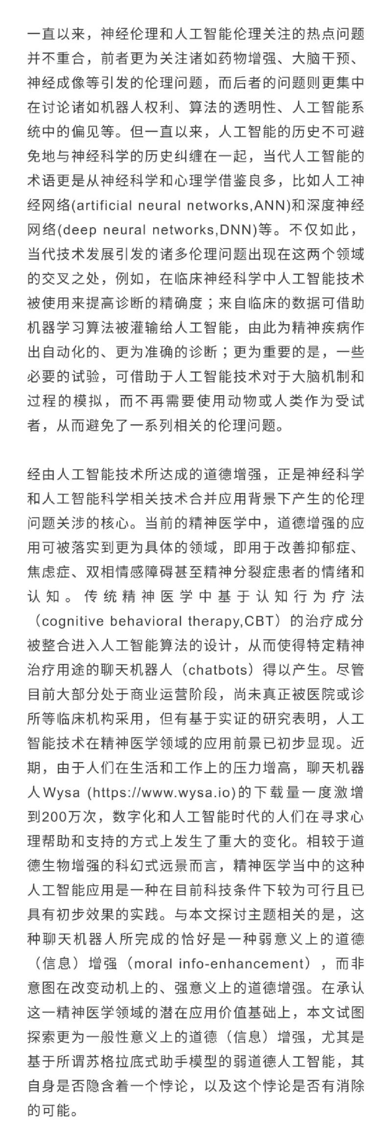 第9期 | 尹洁:弱道德人工智能可行吗 ——从精神医学用途到道德增强