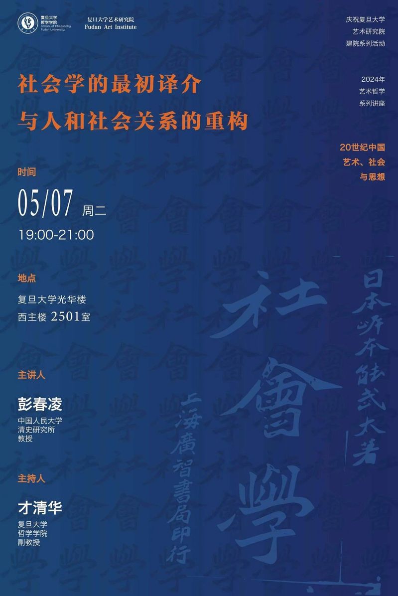 【已结束】2024年艺术哲学系列讲座VI丨彭春凌:社会学的最初译介与人和社会关系的重构