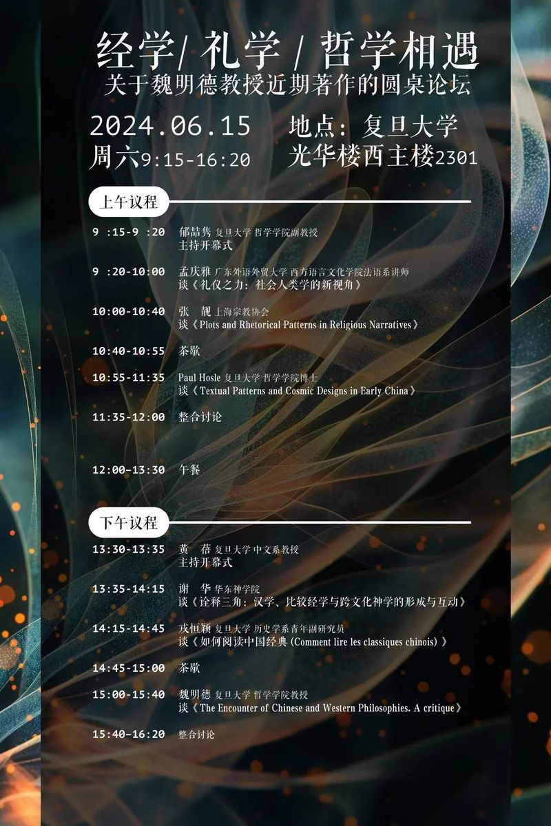 【已结束】经学 / 礼学 / 哲学相遇: 关于魏明德教授近期著作的圆桌论坛