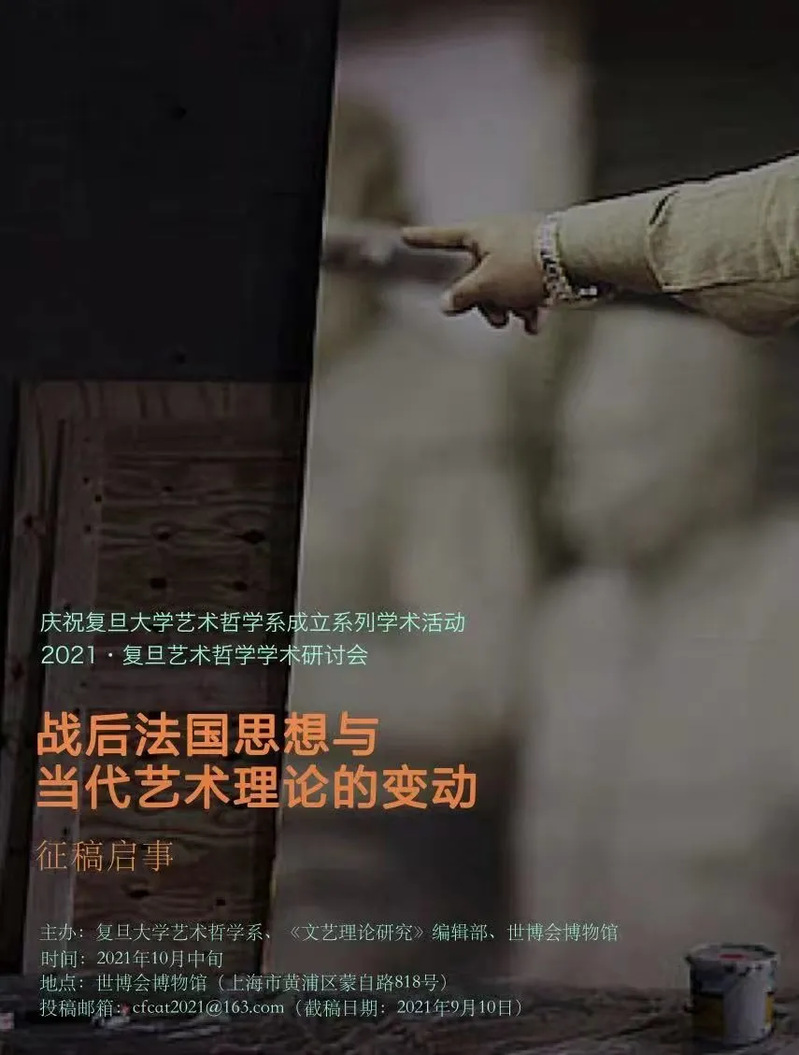 半个多世纪过去,无论是当代法国思想,还是艺术理论和艺术实践,都曾经历、且至今仍面临着前所未有的困境和挑战。如何重识其过去,进而批判性地因应当代变局,则是一个新的紧迫议题。值复旦大学艺术哲学系成立之际,复旦大学艺术哲学系和《文艺理论研究》编辑部拟联合主办“战后法国思想与当代艺术理论的变动”学术研讨会。会议将于2021年10月中旬在上海世博会博物馆举行,自即日起,诚挚向学界同仁征稿。
