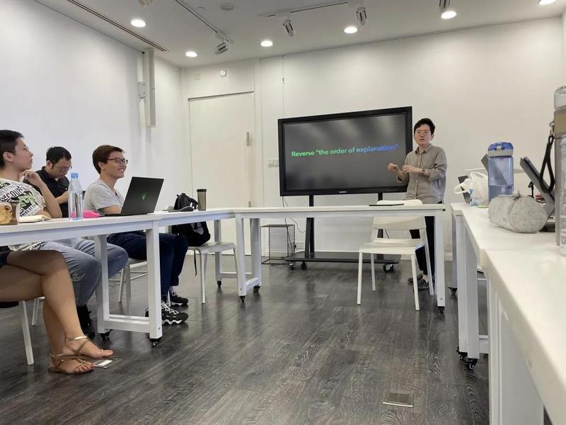 第四位报告人王维嘉老师的报告主题是“决定论、自由与时间”。王维嘉老师从康德哲学的视角阐述了决定论和休谟怀疑论(归纳问题)的关联,并用几个例子说明了决定论的自然律和自由律的一些关联等等。