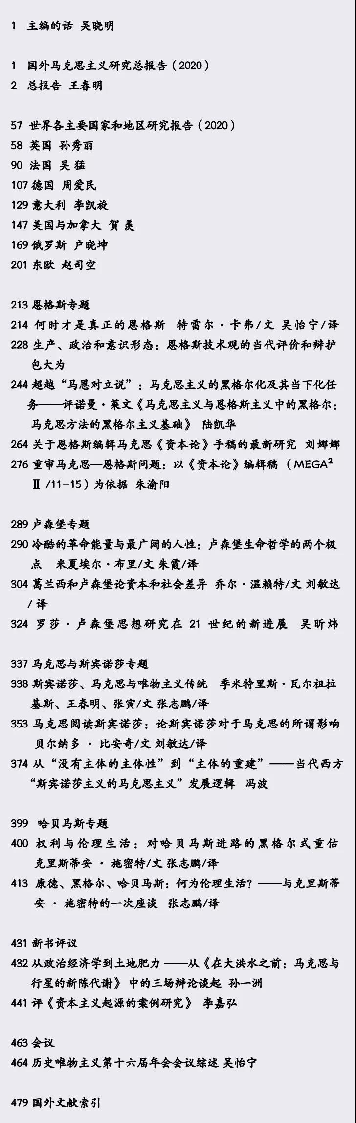 这份研究报告至今已有十年。从总体上看,它的形式框架主要涉及欧陆国家马克思主义(德国、法国、西班牙、意大利等),英语国家马克思主义(英国、美国、澳大利亚、加拿大等),原苏东国家马克思主义(俄罗斯、中东欧国家等),亚非拉国家马克思主义(日本、拉美国家等);除了这些国家和地区的马克思主义研究的最新进展之外,在内容上还围绕着重大专题、理论热点和争论、思想动向等来展开,并在可能的情况下辅之以重要的人物、新著和论点,以及部分激进左翼和其他地区的理论活动,从而使整个报告能够以较为充实而整全的面貌展现出来。我们高兴地看到,在过去的十年间,这份报告的基本目的是达到了:当国外马克思主义研究大规模地扩展开来之际,特别是当年轻的学生、教师和学者迫切的需要——或者是知识的需要,或者是研究的需要——对该领域的前沿有所了解之际,这份研究报告便在某种程度上满足了这种需要,因而它受到欢迎和期待也就不足为奇了。虽然该报告在成长过程中也显露出不少缺点,虽说学界由于急切的知识需要时常能够包容这些缺点,但对于我们来说,快速地了解并弥补不足无疑是一项持续不断的工作要求。