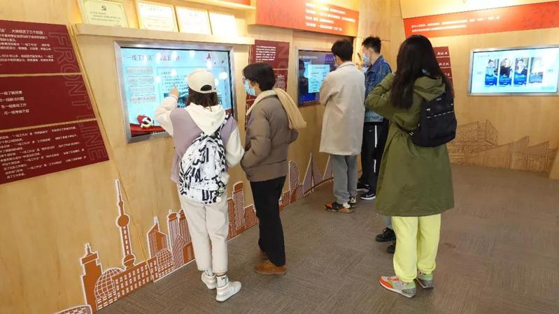 通过互动展板,同学们也了解到杨浦区党建中心在组织区域内思想资源方面创新探索,形成以高校、街道和事业单位为一体的区域化党建联盟。党建中心也充分动员区域内部力量,尤其是区域内复旦、同济、财大等优质高校教师团队,开设“大家微讲堂”,提高辖区内党员、群众的政治觉悟和思想素养。