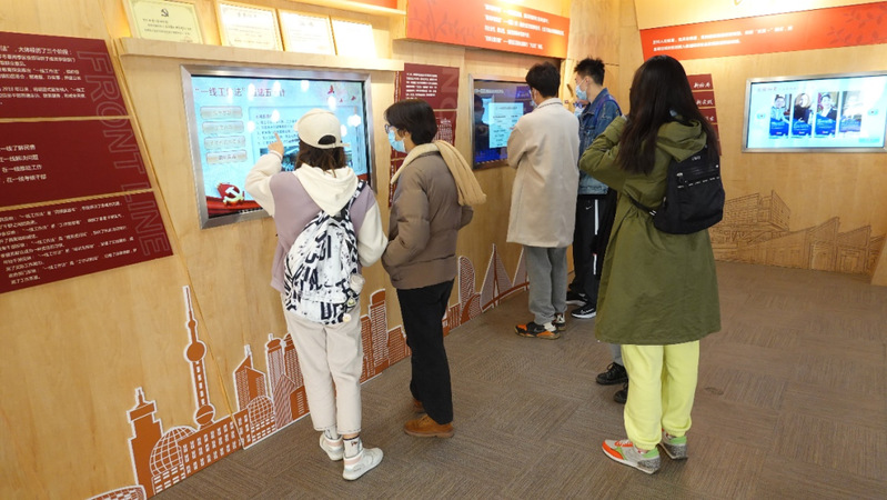通过互动展板,同学们也了解到杨浦区党建中心在组织区域内思想资源方面创新探索,形成以高校、街道和事业单位为一体的区域化党建联盟。党建中心也充分动员区域内部力量,尤其是区域内复旦、同济、财大等优质高校教师团队,开设“大家微讲堂”,提高辖区内党员、群众的政治觉悟和思想素养。