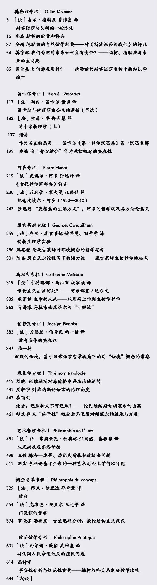 内容简介:《法国哲学研究》是由复旦大学哲学学院教授、博士生导师莫伟民主编的法国哲学学术论文集,一年一辑,今年已出至第四本。书稿共分为九个部分,其中六个主要以法国哲学家为研究对象,分别是德勒兹、笛卡尔、阿多、康吉莱姆、马拉布、伯努瓦,另三个部分则为专题性哲学研究,分别是现象学、艺术哲学、概念哲学。其中,每一篇文章都具有不同的讨论面向,如在第一部分,四位国内学者所作的关于德勒兹哲学的论文,安靖的“德勒兹的自然哲学纲要——对《斯宾诺莎与我们》的评注”和曹伟嘉的“如何静观质料?——德勒兹的斯宾诺莎重构中的知识学缺口”都是对德勒兹关于斯宾诺莎讨论的研究;尚杰的“精神的能量和样态”谈到德勒兹对弗洛伊德的继承与转变:德勒兹将精神分析进一步发展为“精神分裂分析”,将其从哲学领域拓展到了艺术领域,通过精神分裂,为人的感受性重新命名;姜宇辉的“我们为何对未来世代负有责任?——福柯、德勒兹与未来的生与死”则通过对死亡问题的讨论,试图解构世代延续中的生命同一性,追问我们在这样一种断裂的未来中应当如何对未来负责。