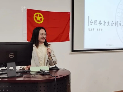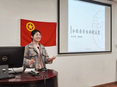 分团委学生会副主席张妙妙同学首先欢迎新书记张港悦老师的加入。接着,张妙妙同学强调了本学期学院承办的大事:Sophia人文节,并表示活动的成功举办离不开大家的付出。最后,张妙妙同学向分团委学生会成员们提出了一些期待,她希望新晋副部们要有主动意识,有条理地安排部门工作。