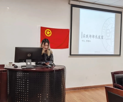 实践部部长缪馨玲同学首先回顾了上学期部门整体工作氛围,接着提出了新学期对部门成员的三点建议,即把握好大活动中的各个时间节点、注重细节、减少抱怨,面对力不从心、焦虑的情况时,可以多与部长进行反馈沟通。
