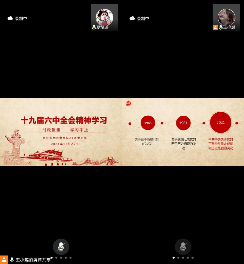 2021年11月26日晚,哲学学院2021级本科生班党支部联合党章学习小组在线上开展了十九届六中全会精神和党章党史学习活动。经过此次集中学习,同学们对于党的组织架构以及奋斗历程有了更加深刻的认识和理解。
