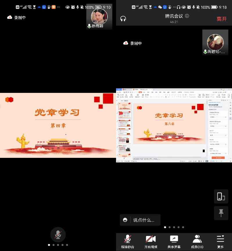理论学习第二部分,党章学习小组第二小组的同学们为大家分享了《党章》理论学习成果。首先,孙雨翾同学带领大家一起学习了《中国共产党章程》第四章“党的地方组织”和第五章“党的基层组织”,介绍了党的地方各级代表大会的职权、党的基层组织的基本任务等内容。同时,孙雨翾同学提出了自己在学习中发现的问题,引导同学们思考“党的各级委员会与人大的各级委员会在组织结构上的异同”。随后,陶若玘同学为大家介绍了第六章“党的干部”和第七章“党的纪律”,结合 “把一切都献给党、献给贫困山区的孩子们”的张桂梅同志、一辈子践行初心使命的“花萼愚公”周永开同志的先进事迹,以及严守党内纪律的杨秀峰、李克才同志的模范事迹,激励着同学们坚定理想信念,严守纪律,矢志不渝的为人民做贡献。