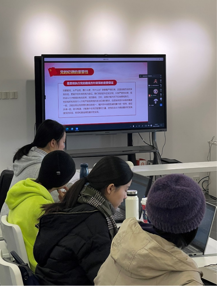 2021年12月20日中午,哲学学院2021级硕士研究生班党章学习小组开展了关于党的章程制度的学习。此次学习主要以中国共产党党章的第五章、第七章、第十章与第十一章为主要内容,刘琪与杨铭燕两位同学领学导读,小组成员进行了充分的讨论。