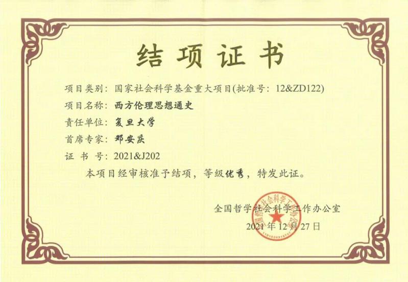 日前,复旦大学哲学学院邓安庆教授主持的国家重大项目《西方道德哲学通史》顺利结项,且被评为等级优秀。