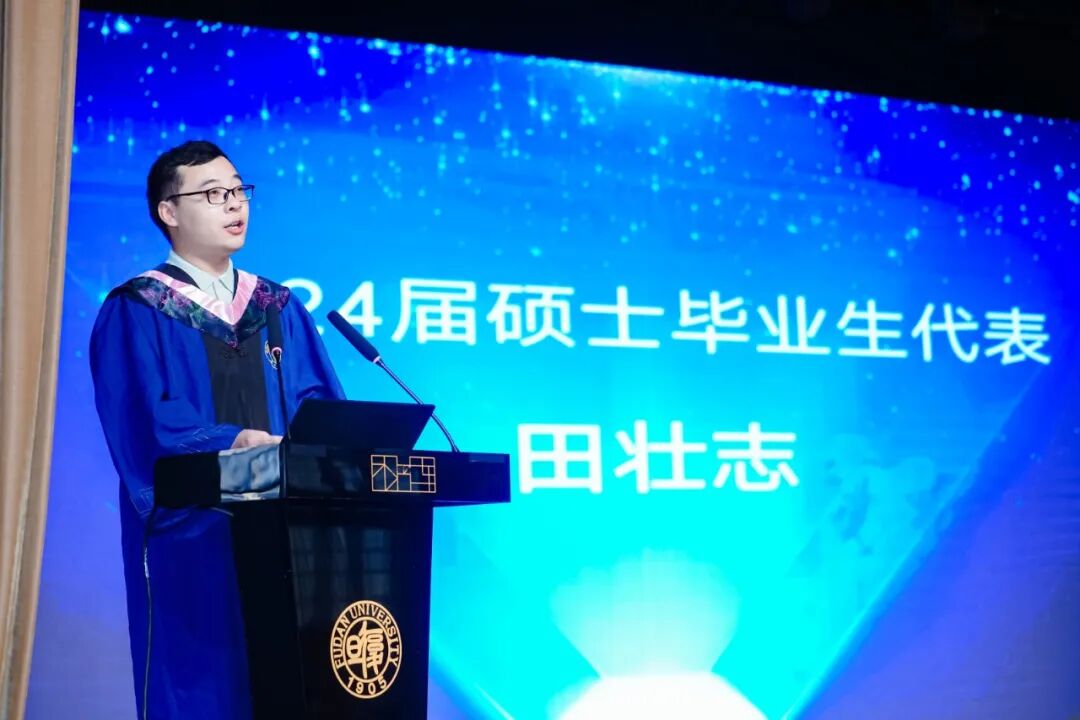 大家下午好!我是2024届伦理学专业硕士毕业生田壮志,很荣幸有机会在毕业典礼上发言。毕业的季节,是离别,更是新的人生阶段的开启,有的同学将继续留在校园深造,怀揣热爱投身到学术研究中,有的同学也和我一样将走上工作岗位,在广阔天地中挥洒青春,做出自己的贡献。无论奔向何处,对于我们来说此时此刻都是一个最合适的时间,去回忆和总结我们求学之旅的收获和成长。