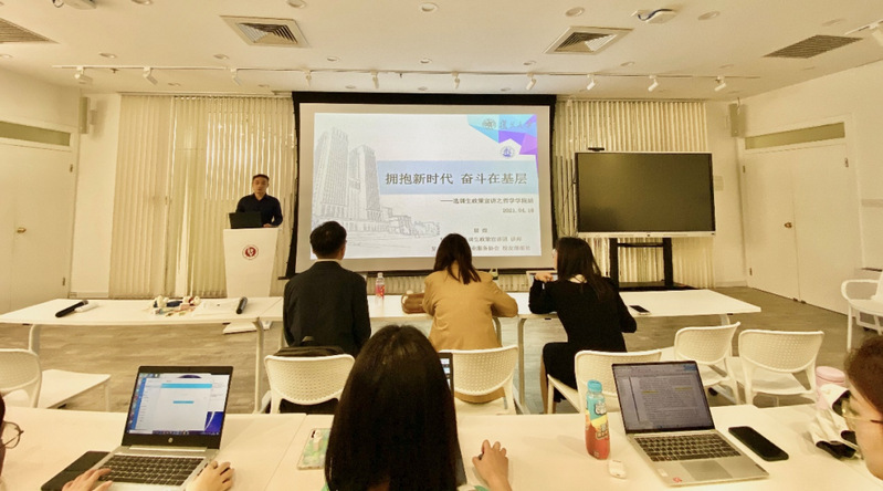 紧接着,屈煜为大家展示了选调生的历史发展以及相关政策对选调生的培养导向;此外,生动讲解了广大青年才俊将个人成长和国家发展、社会进步紧密结合;然后,向大家分享了复旦选调生校友现状,并讲述了周峰等优秀复旦选调生校友的典型事迹,勉励大家向优秀校友学习,站稳人民立场,接续奋斗。