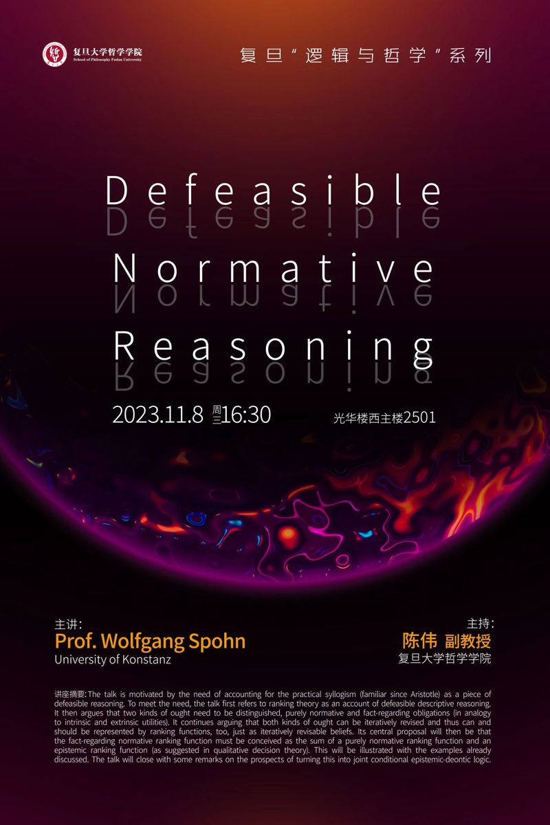 【已结束】“逻辑与哲学”系列讲座 | Wolfgang Spohn :Defeasible Normative Reasoning
