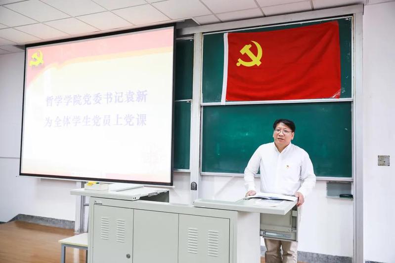 2021年5月25日下午,复旦大学哲学学院学生党总支第三次党员大会在3209教室召开。大会由第二届总支委员薛宏伟同志主持,学院党委书记袁新同志出席大会并为全体学生党员上党课。