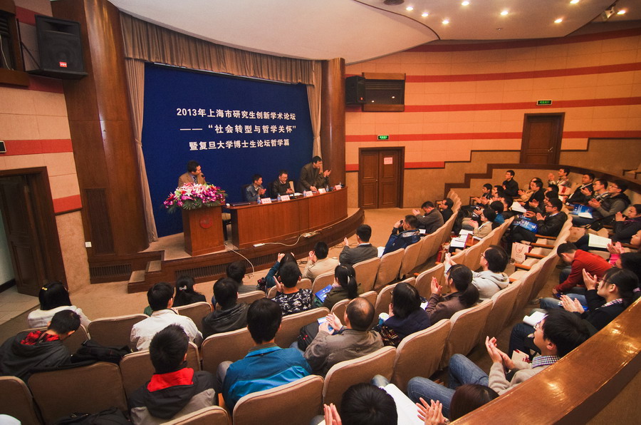 2013年11月23日上午8点30分,由上海市学位委员会办公室主办、复旦大学研究生院、复旦大学党委研究生工作部与复旦大学哲学学院共同承办的上海市研究生创新学术论坛——“社会转型与哲学关怀”暨复旦大学博士生学术论坛哲学篇,在复旦大学逸夫楼1楼报告厅举行论坛开幕式。