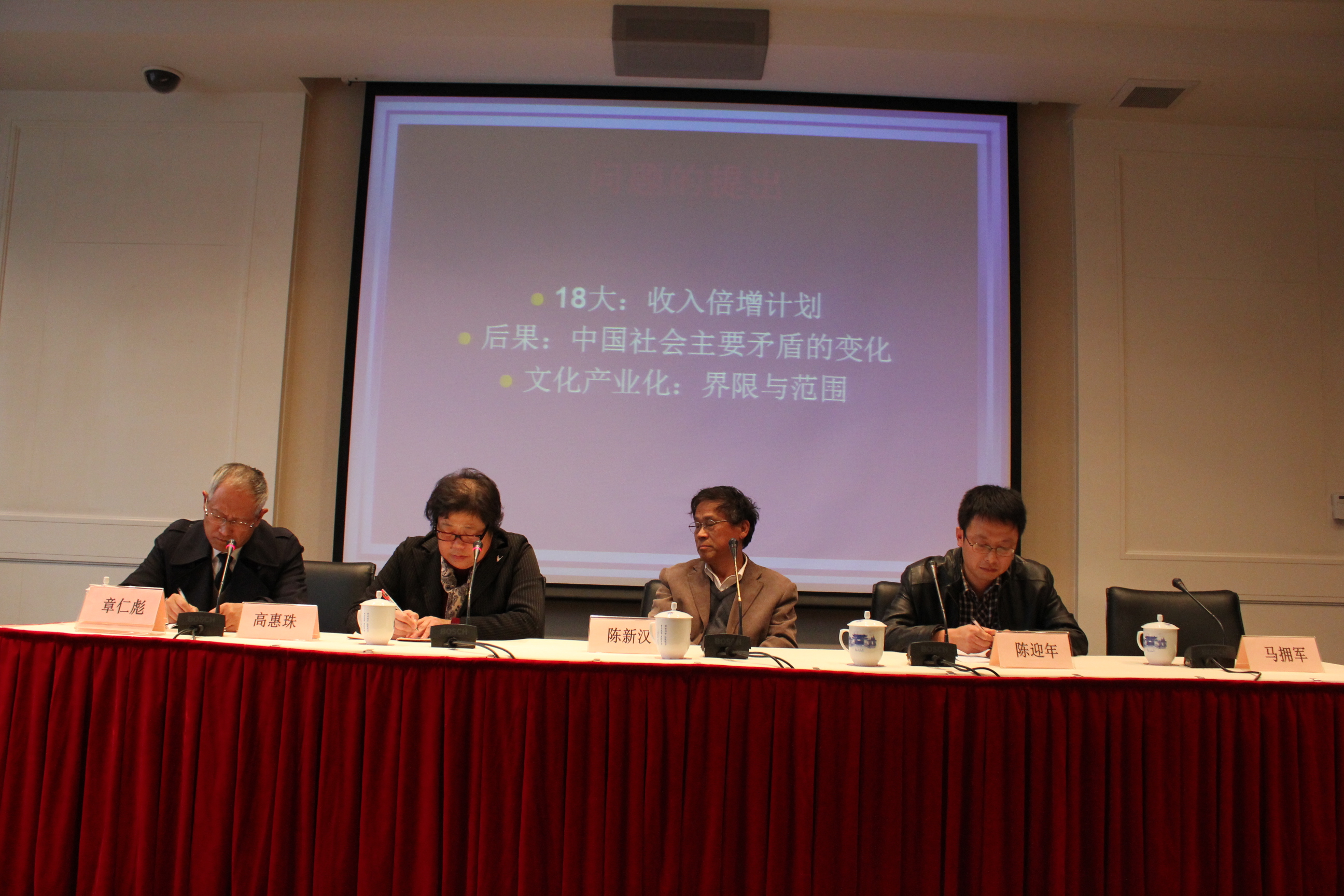 在上海师范大学高惠珠教授主持的“大会发言”中,上海大学陈新汉教授首先阐发了文化的三个层面,即器物、制度与观念层面,然后指出文化最根本的核心还是人,文化的功能是改造自然、映现自己。他强调,文化在自我反思中趋向自觉。因此文化建设的最终目的应该要实现人的自我发展。同济大学章仁彪教授从大学章程的制订为切入点,指出大学的章程建设应该主要塑造大学形象,而大学形象塑造应该以他者的印象为中心。以此,他对大学管理制度进行了反思,强调要限制“官本位化”现象,限制权力膨胀。上海财经大学马拥军教授从文化需要与文化产业关系出发,讨论了文化需要的界限与范围、需要层次与需要异化、需要结构与产业结构转型、文化层次与文化产业等问题,他指出,随着物质生产的极大丰富,中国社会的主要矛盾即人民群众日益增长的物质、文化需求同落后的社会生产力之间的矛盾将可能发生变化。华东理工大学陈迎年副教授指出,如果文化被置于与形象、经济、政治等同等的地位,那么作为“文化”的文化究竟何在的问题就值得人们反思。