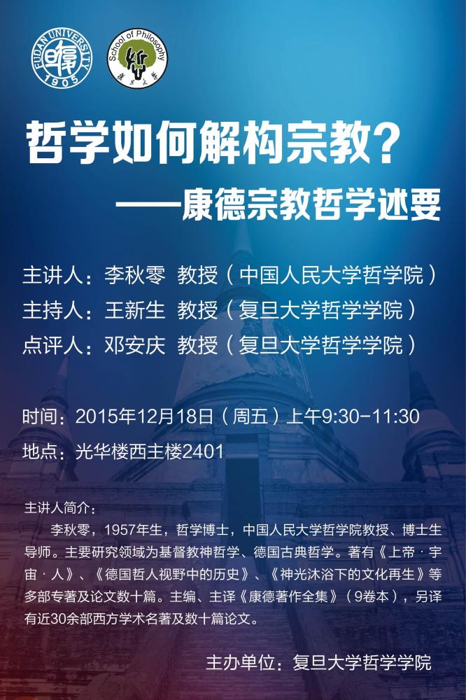 学术讲座:哲学如何解构宗教?——康德宗教哲学述要