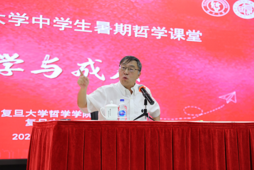 中学生暑期哲学课堂是复旦大学哲学学院推广哲学教育、走进中学的重要组成部分,从2019年起开始举办。第一届、第二届主题分别为“认识你自己”“科学与哲学”。本届暑期哲学课堂为期6天,以“为学与成人——儒家哲学智慧探秘”为主题。7月11日至15日哲学学院张汝伦教授、郭晓东教授、林宏星教授、何俊教授、吴震教授将分别在复旦大学和复旦中学讲授5场中国哲学专题讲座,徐英瑾教授、沈语冰教授、徐波副教授、祁涛副教授将带来4场通识讲座。同时,中学生们还将在助教团队带领下,进行“生活世界中的哲学思想”主题讨论和论文写作训练。在7月16日于复旦中学举行的中学生哲学论坛和闭幕式上,中学生们将通过论文交流,展示哲学学习和思考的成果。