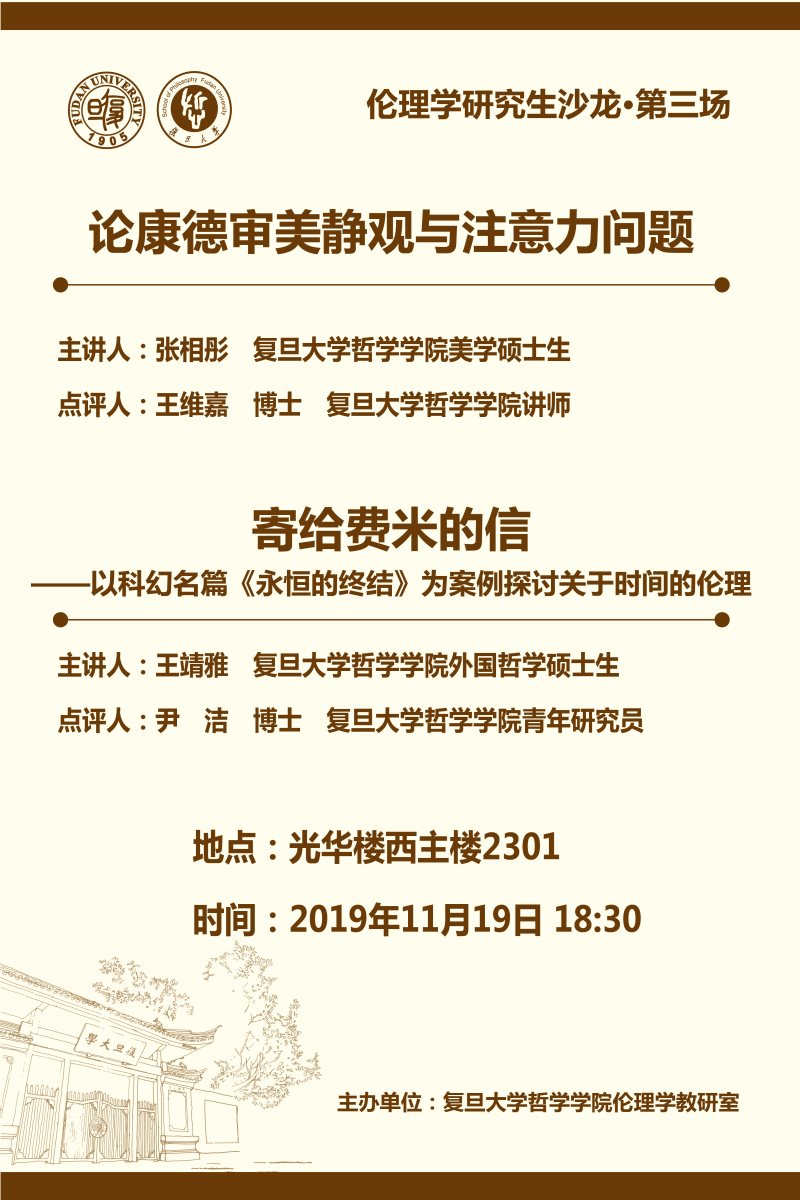 【伦理学研究生沙龙·第三场】论康德审美静观与注意力问题/寄给费...