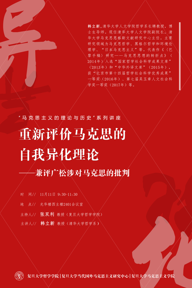 【“马克思主义的理论与历史”系列讲座】重新评价马克思的自我异...