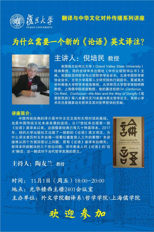 翻译与中华文化对外传播系列讲座:为什么需要一个新的《论语》英...