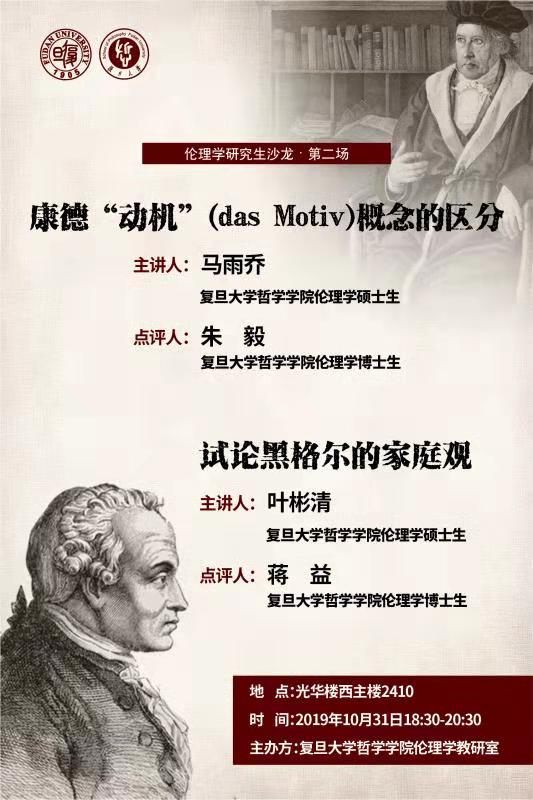 【伦理学研究生沙龙·第二场】康德“动机”概念的区分/试论黑格尔...