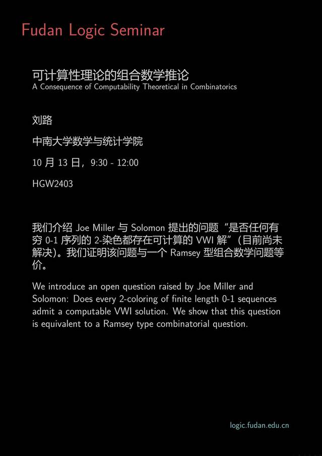 【Fudan Logic Seminar】可计算性理论的组合数学推论