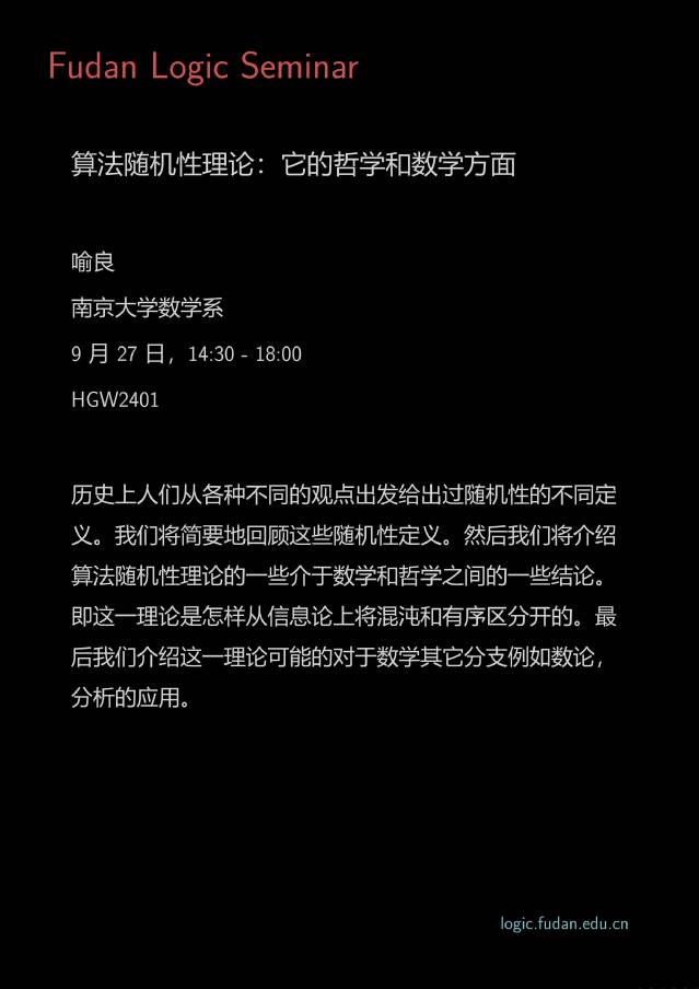 【Fudan Logic Seminar】算法随机性理论:它的哲学和数学方面