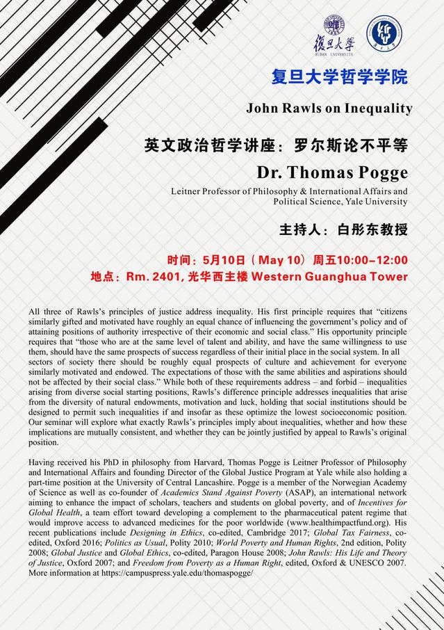 耶鲁Pogge教授:罗尔斯论不平等(时间已改,请注意)