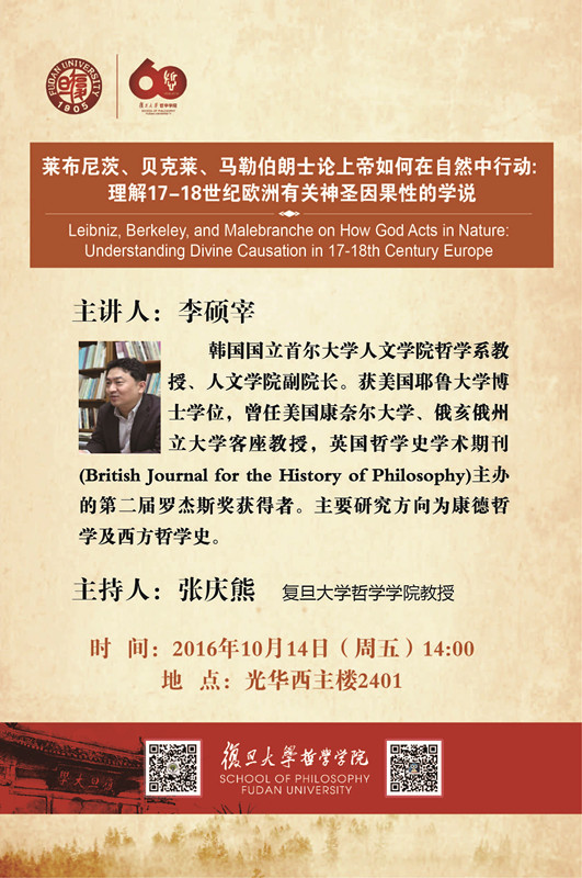 学术讲座:莱布尼茨、贝克莱、马勒伯朗士论上帝如何在自然中行动...