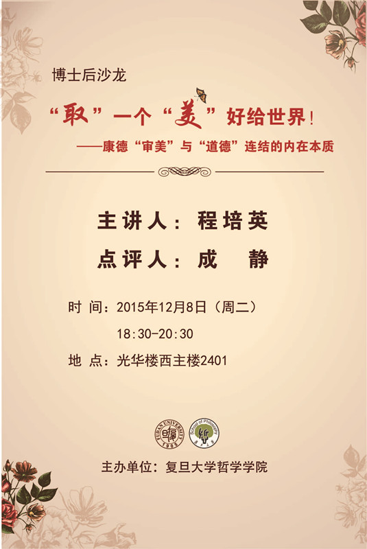 博士后沙龙:“取”一个“美”好给世界——康德“审美”与“道德”...
