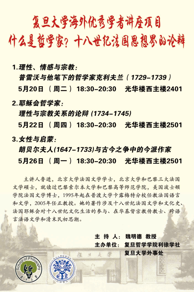 复旦大学海外优秀学者讲座项目:什么是哲学家?十八世纪法国思想...