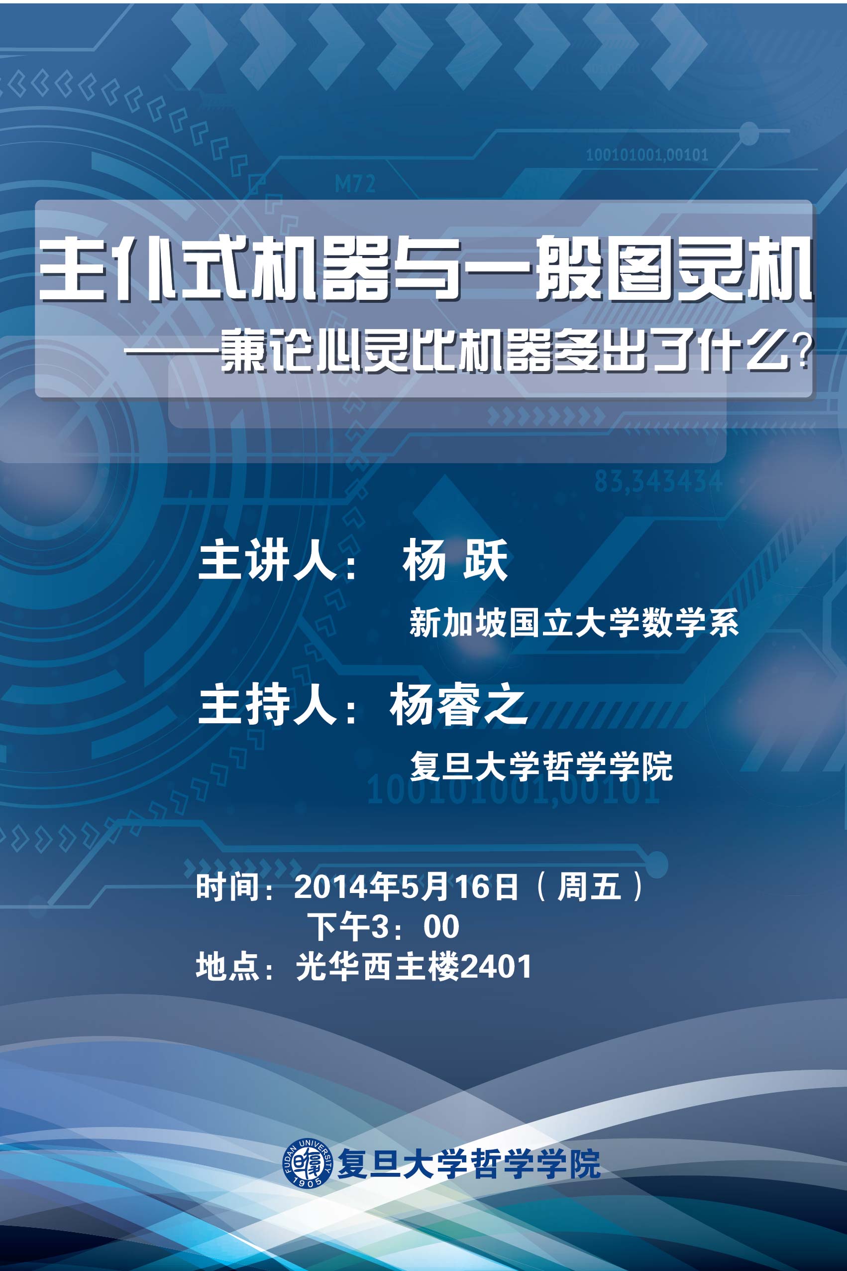 学术讲座:主仆机与一般图灵机——兼论心灵比机器多出了什么?
