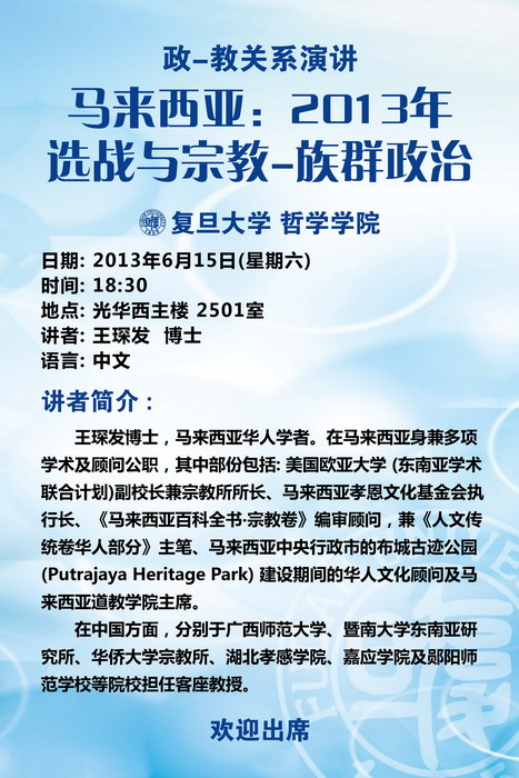 政-教关系演讲:马来西亚——2013年选战与宗教-族群政治
