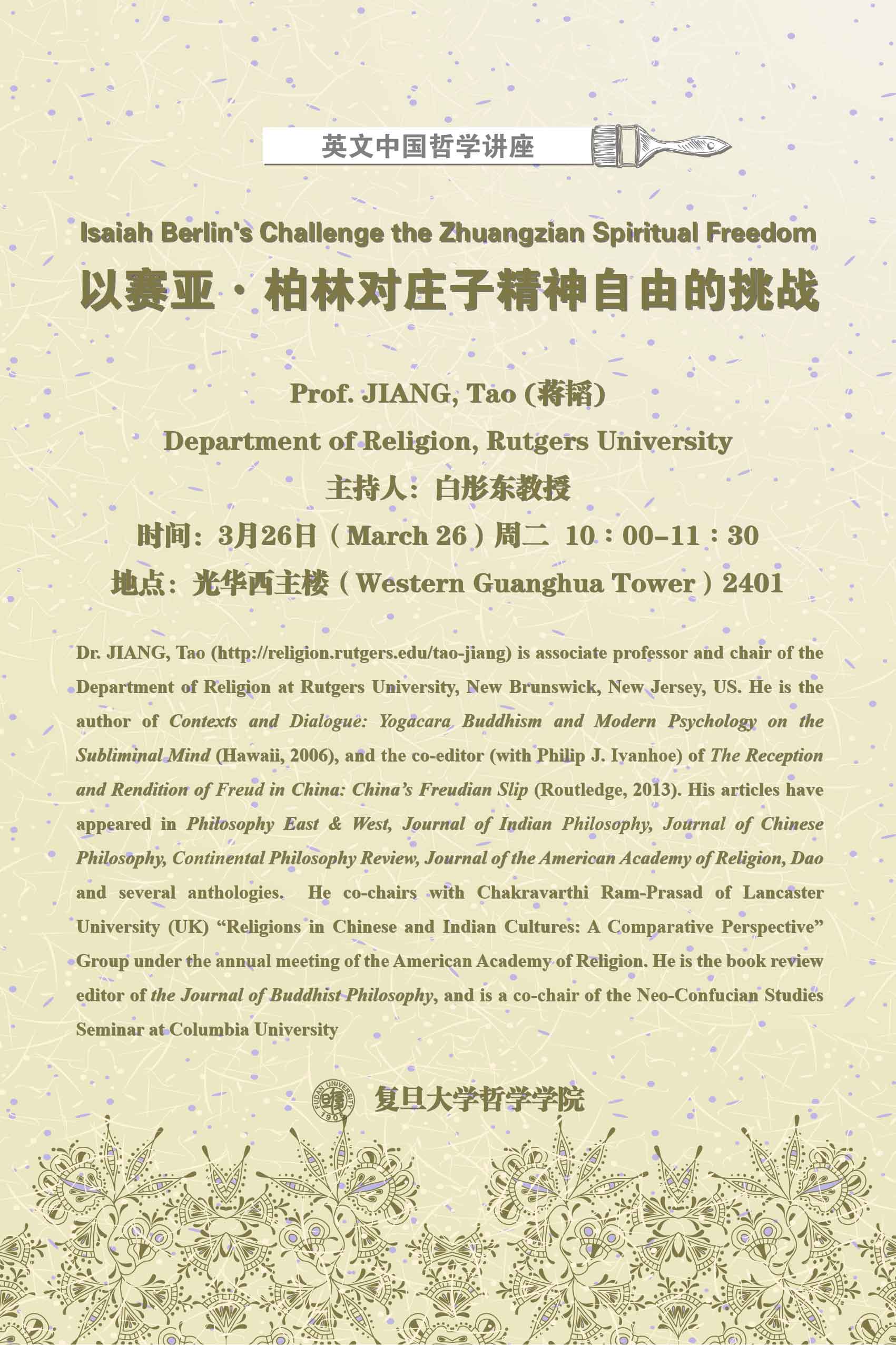 英文中国哲学讲座:以赛亚·柏林对庄子精神自由的挑战
