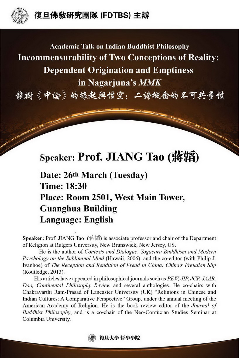 学术讲座:「龍樹《中論》的緣起與性空:二諦概念的不可共量性」
