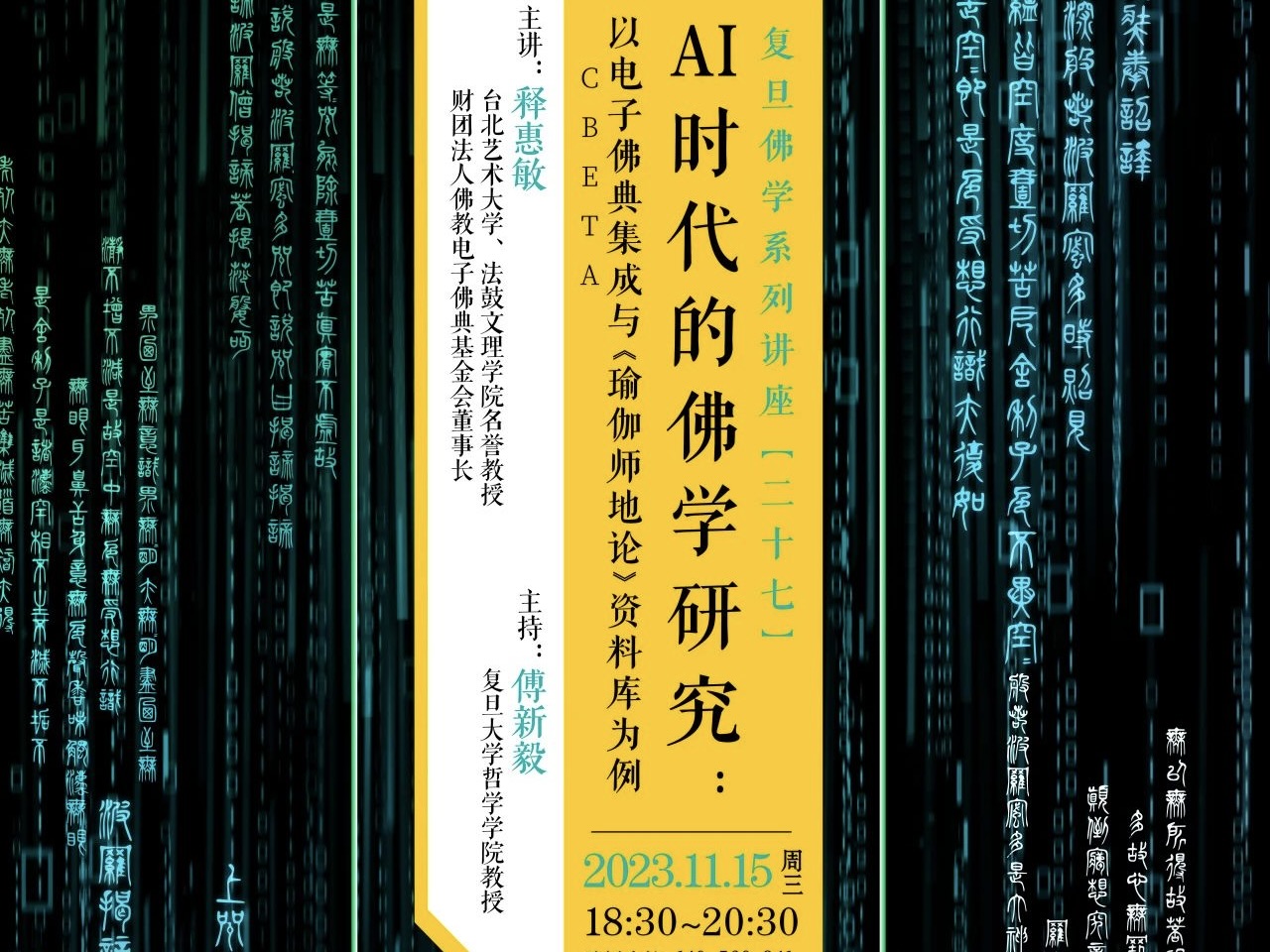 【已结束】复旦佛学系列讲座【二十七】| 释惠敏:AI时代的佛学研...