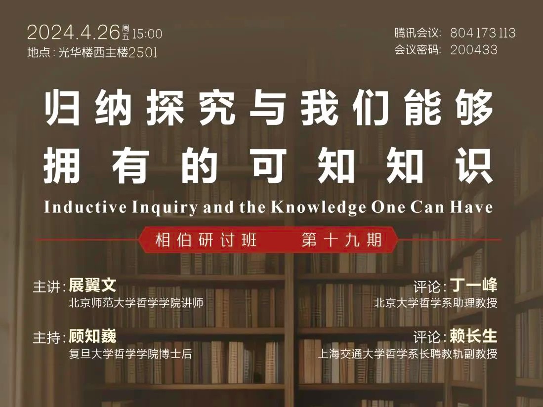【已结束】相伯研讨班第十九期 | 展翼文:归纳探究与我们能够拥...