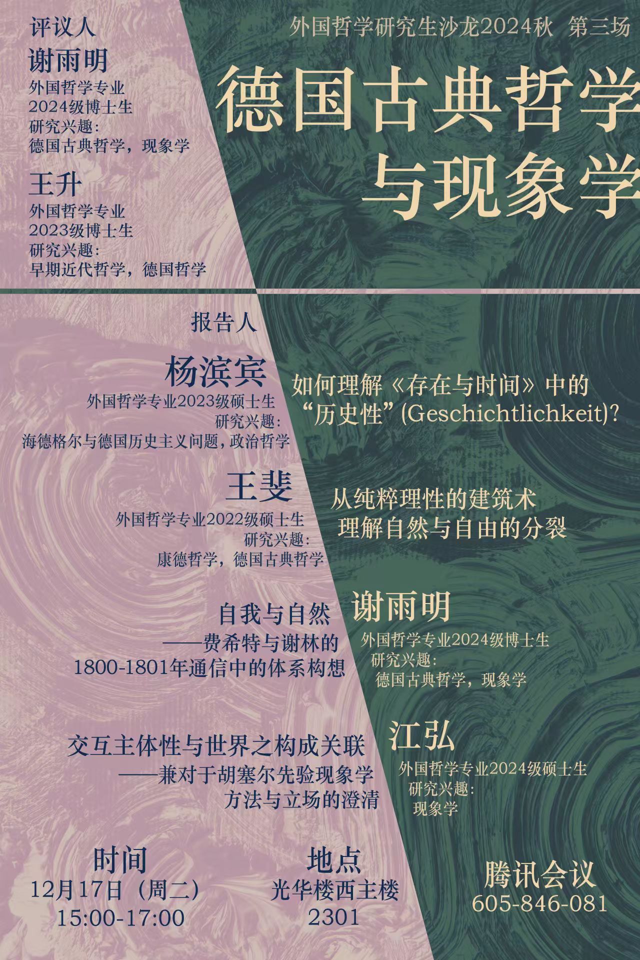 研究生沙龙 | 外国哲学学术沙龙2024秋第三场
