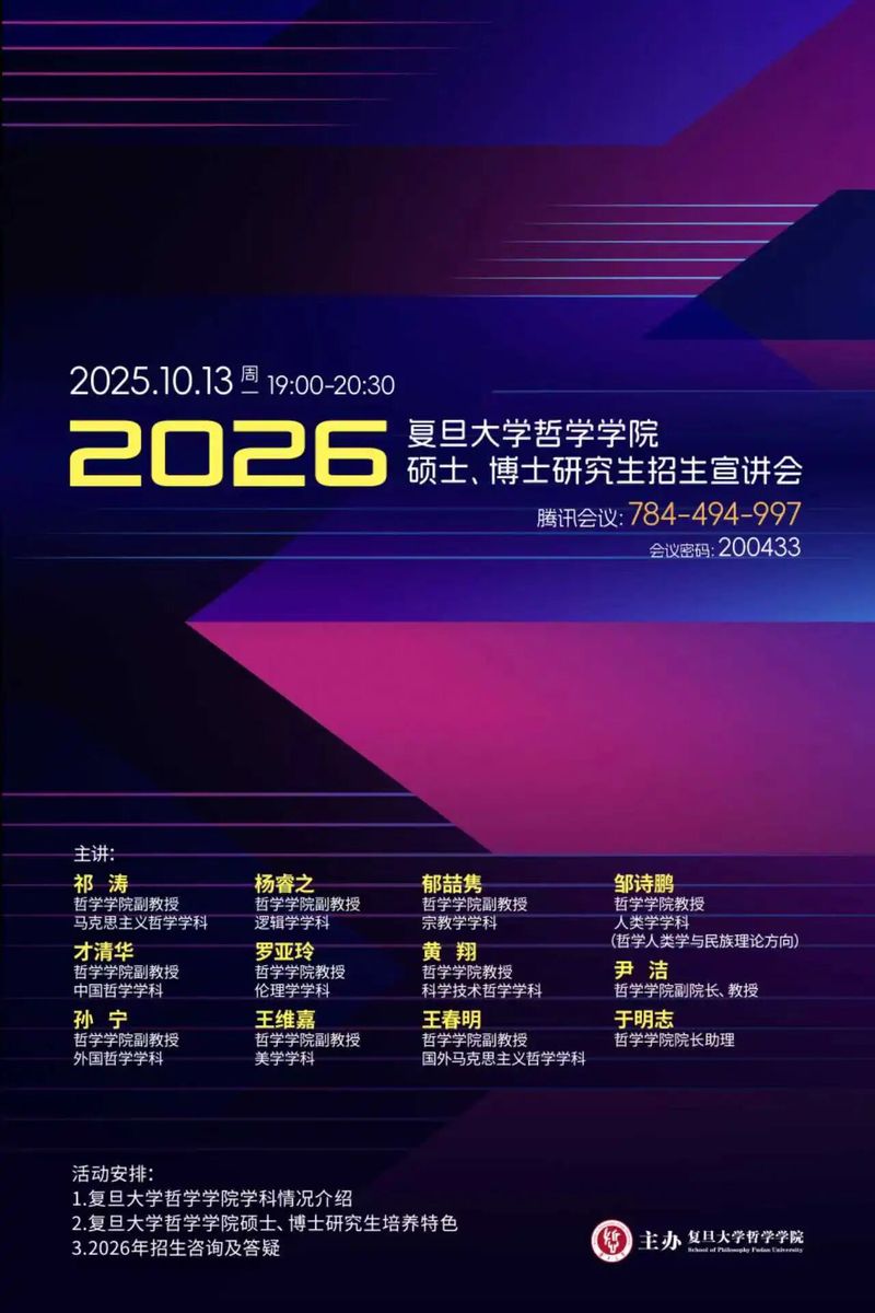 复旦大学哲学学院2026年度硕士、博士研究生招生宣讲会